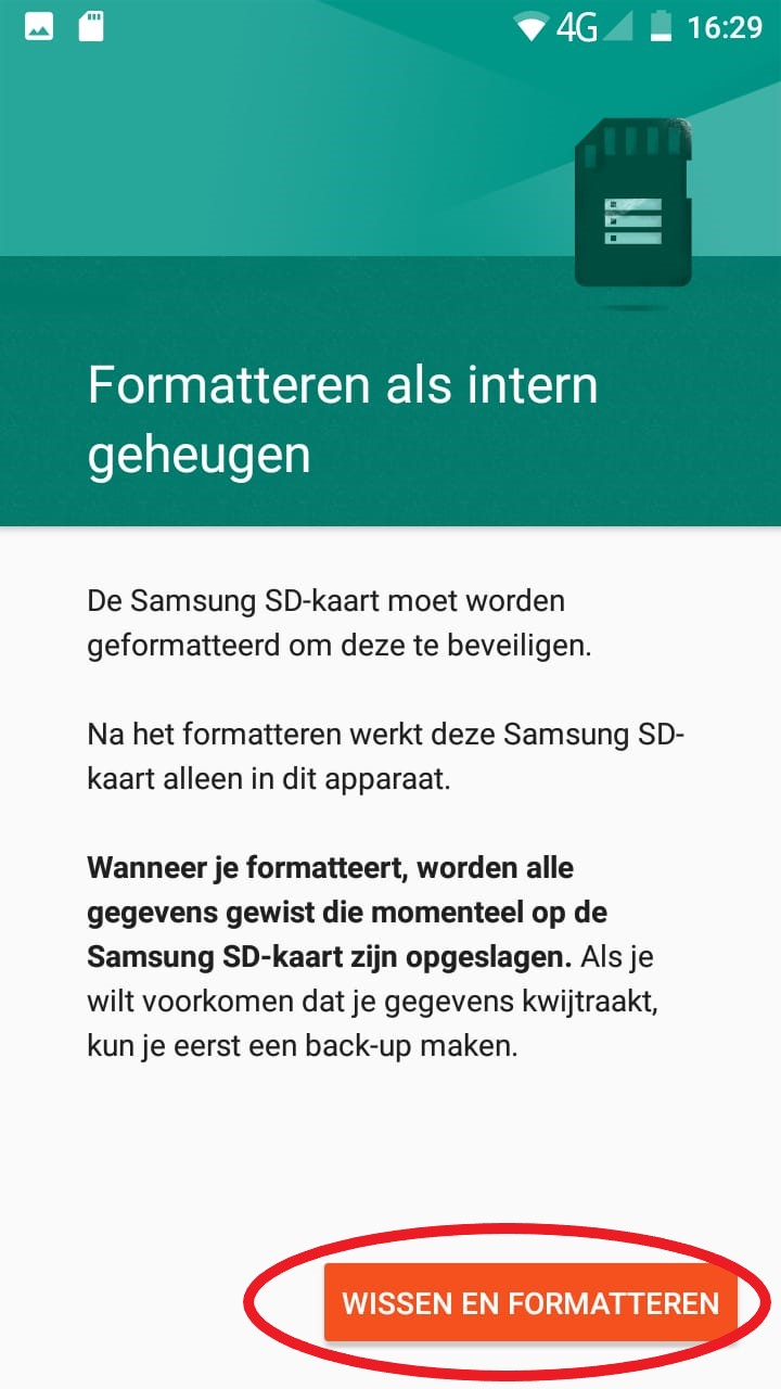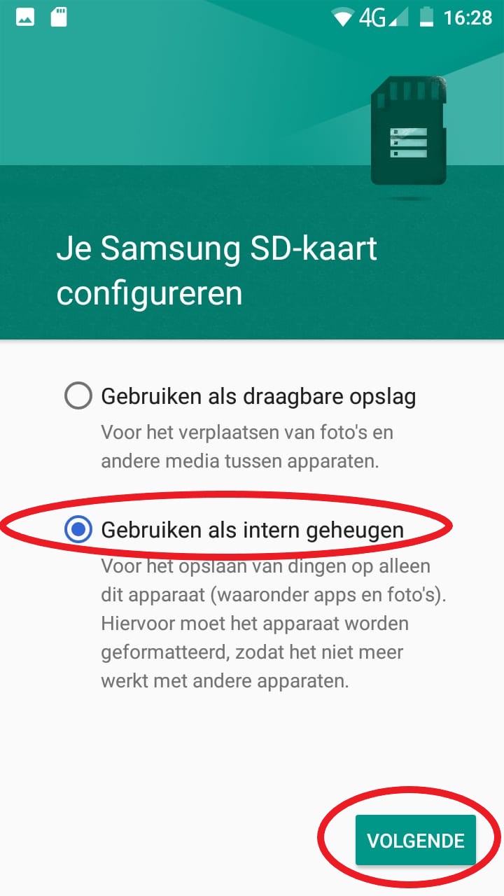 Dit kan opgelost worden door een geheugen SD-kaartje te plaatsen van 32GB en deze in te stellen als intern/werkgeheugen.
